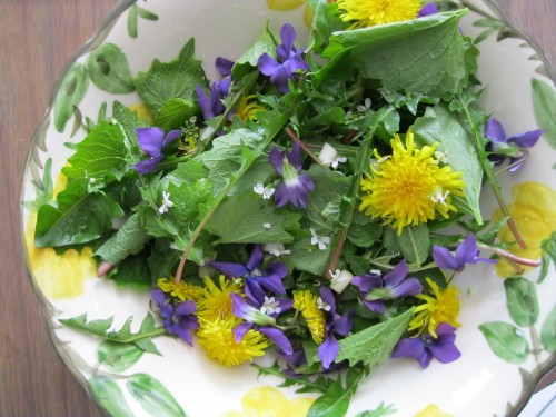The other day I was out browsing the yard for fresh, wild spring foods and thought about making a salad with everything I found. It is nice to have fresh, free food, especially when they are purely organic and totally free of pesticides.